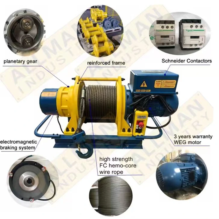 У нас есть собственный завод по производству электрических тросовых лебедок грузоподъемностью 500 кг, 750 кг, 1000 кг, 1600 кг, 2 тонны, 3 тонны, 5 тонн и 10 тонн. Напряжение питания может составлять 220 В, 380 В, 440 В по выбору клиентов, также возможно изготовление по индивидуальному заказу.
